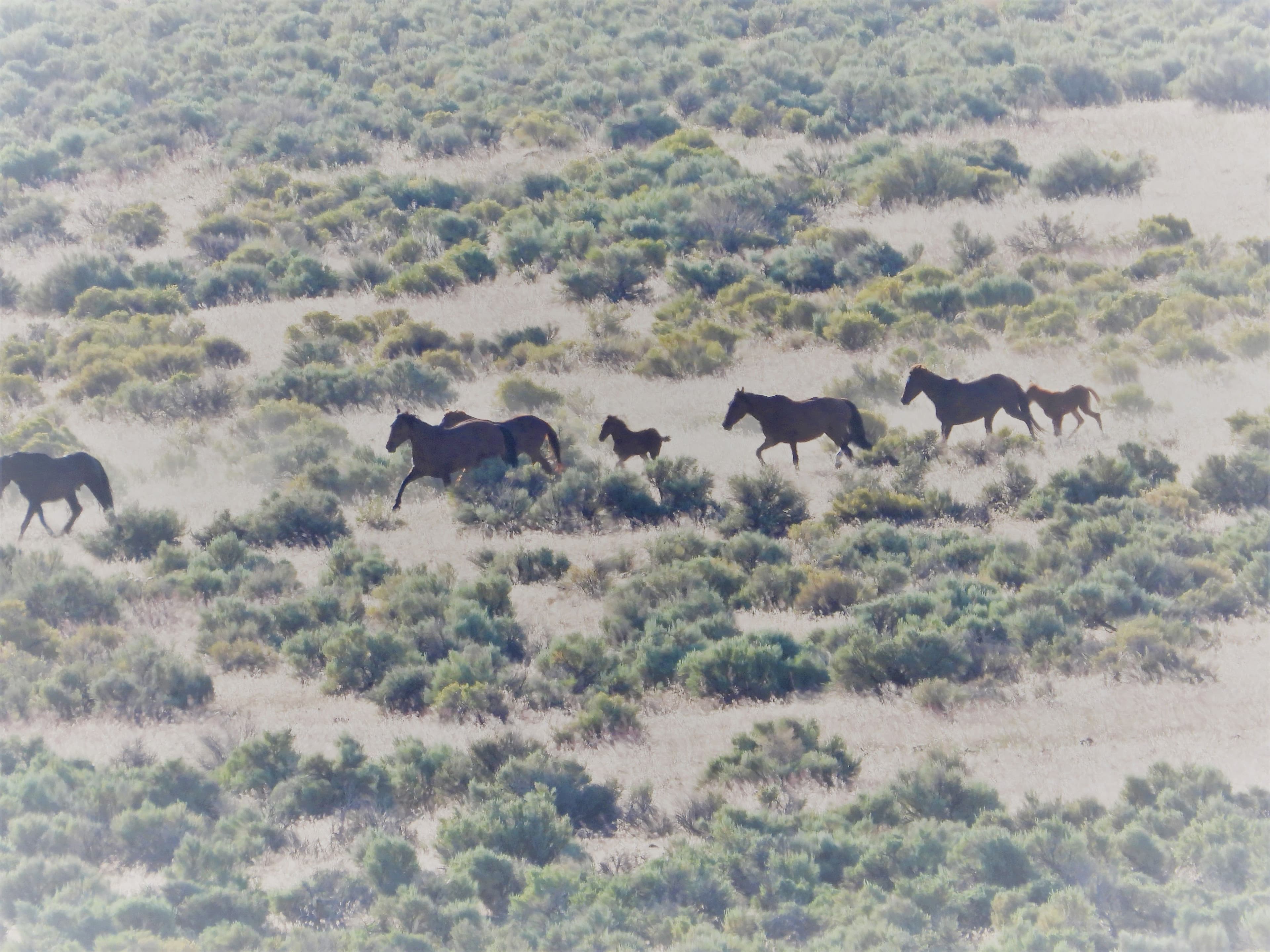 TheBLMplaced us in an area where we could not see the end of the trap and only had a partial view of the wing. The horses could be seen drenched with sweat, and young foals were falling behind, exerting themselves to keep up with their herd.