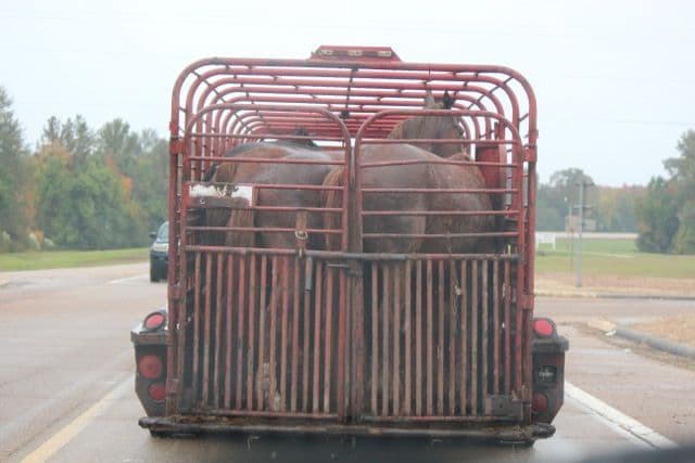 Trailer loads of wild horses leaving Stan Palmer's on October 31, 2013.