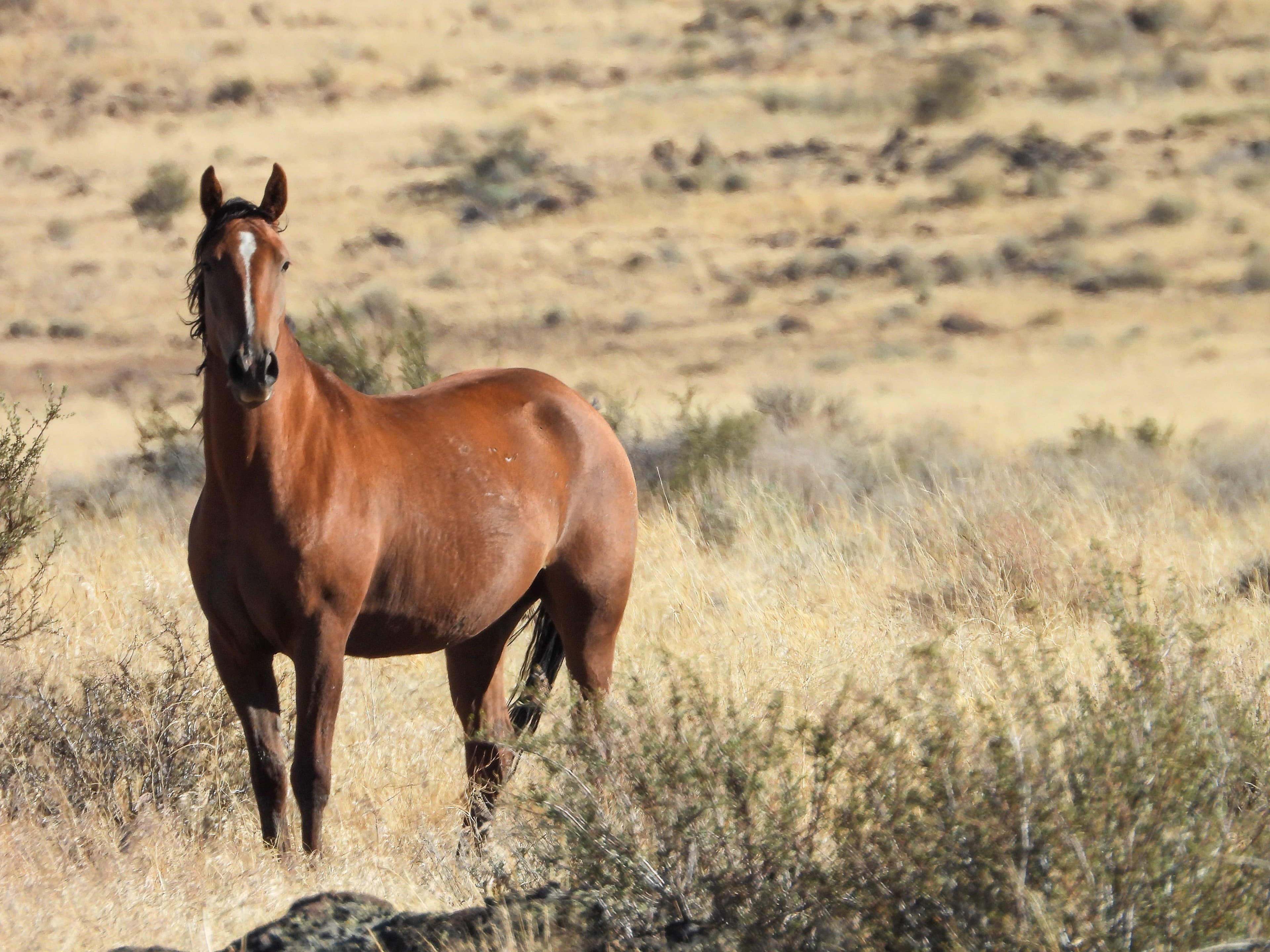 Horses roaming the HMA. Note the difference in natural vegetation when in the absence of cattle.