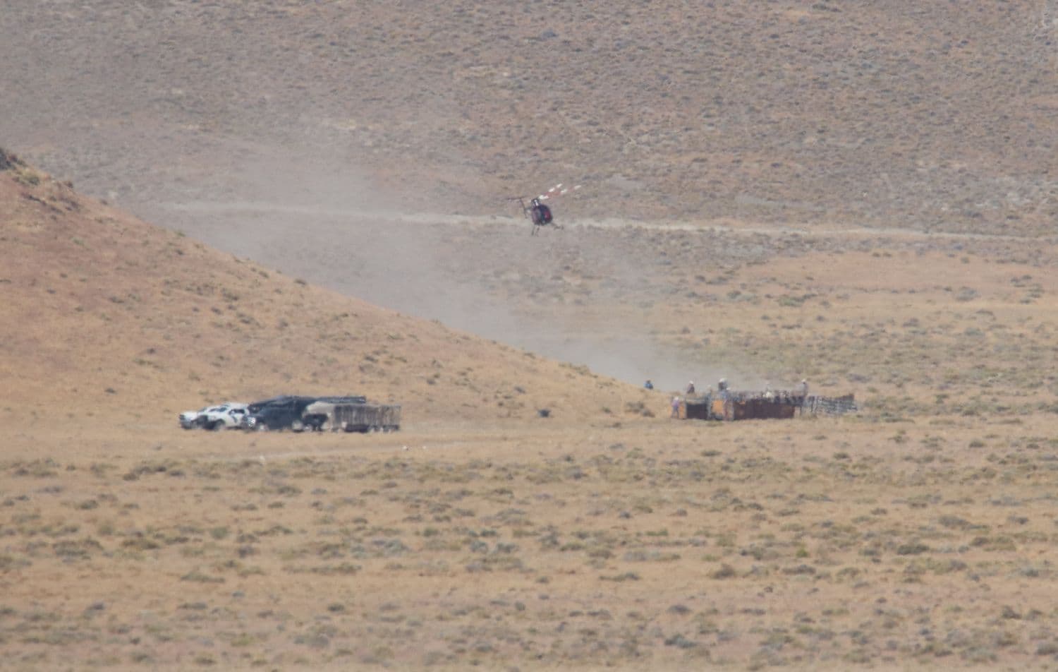 The roundup takes place in the distance as two Blue Wing burros evade the helicopter