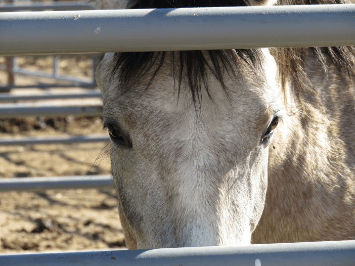 Thousands of wild horses like this young mustang in Nevada languish in government holding pens. Their freedom stolen. Their families separated. Their sadness evident in their eyes.