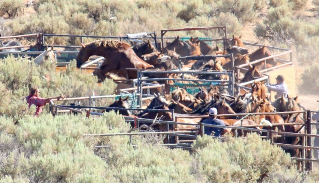 VIDEO: Dozens of Stressed Wild Horses Attempt Escape from Cramped Pens in CA/NV Federal Operation