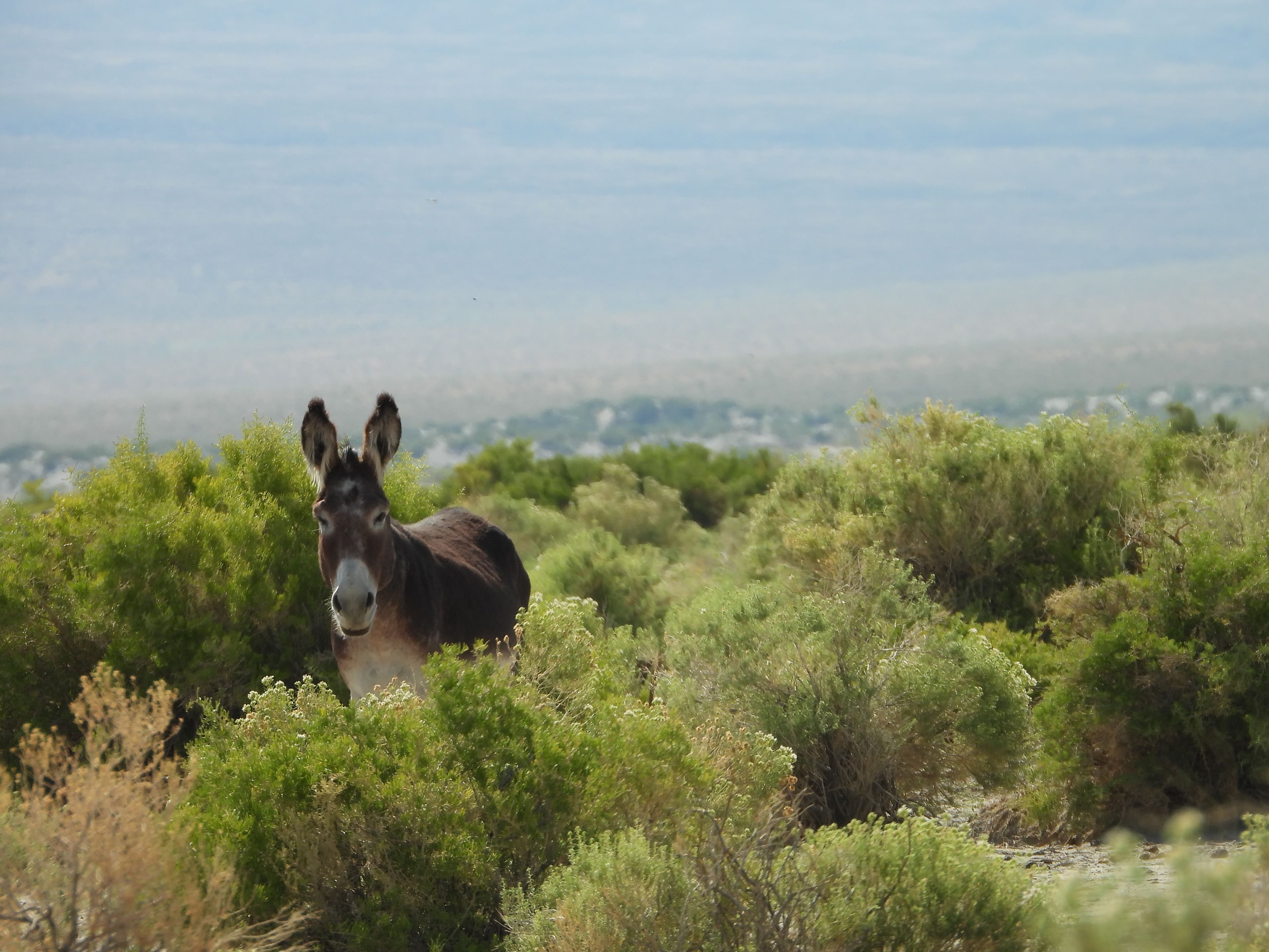 Last week, American Wild Horse Conservation (formerly American Wild Horse Campaign) observers arrived at the Marietta Range. They began their search for burros at 6 a.m., spotting small groups of three to five throughout the range. The largest group included numerous young burros, including foals, engaging in curious and tender interactions. A young burro sniffed the sagebrush, watched the birds, and nestled close to its mother, while the vigilant father kept a watchful eye on any approach. Three bachelor males lingered nearby as the group grazed on abundant grass and drank from water pockets.