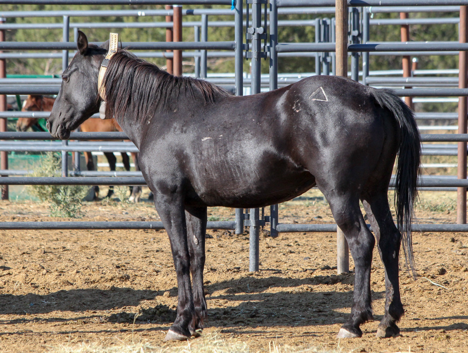 At the Double Devil Corrals, which are open to the public only one day a week, we observed three mares wearing tracking collars. They had star or triangle hip brands. When asked about the different brands, officials directed that questions be submitted in writing.