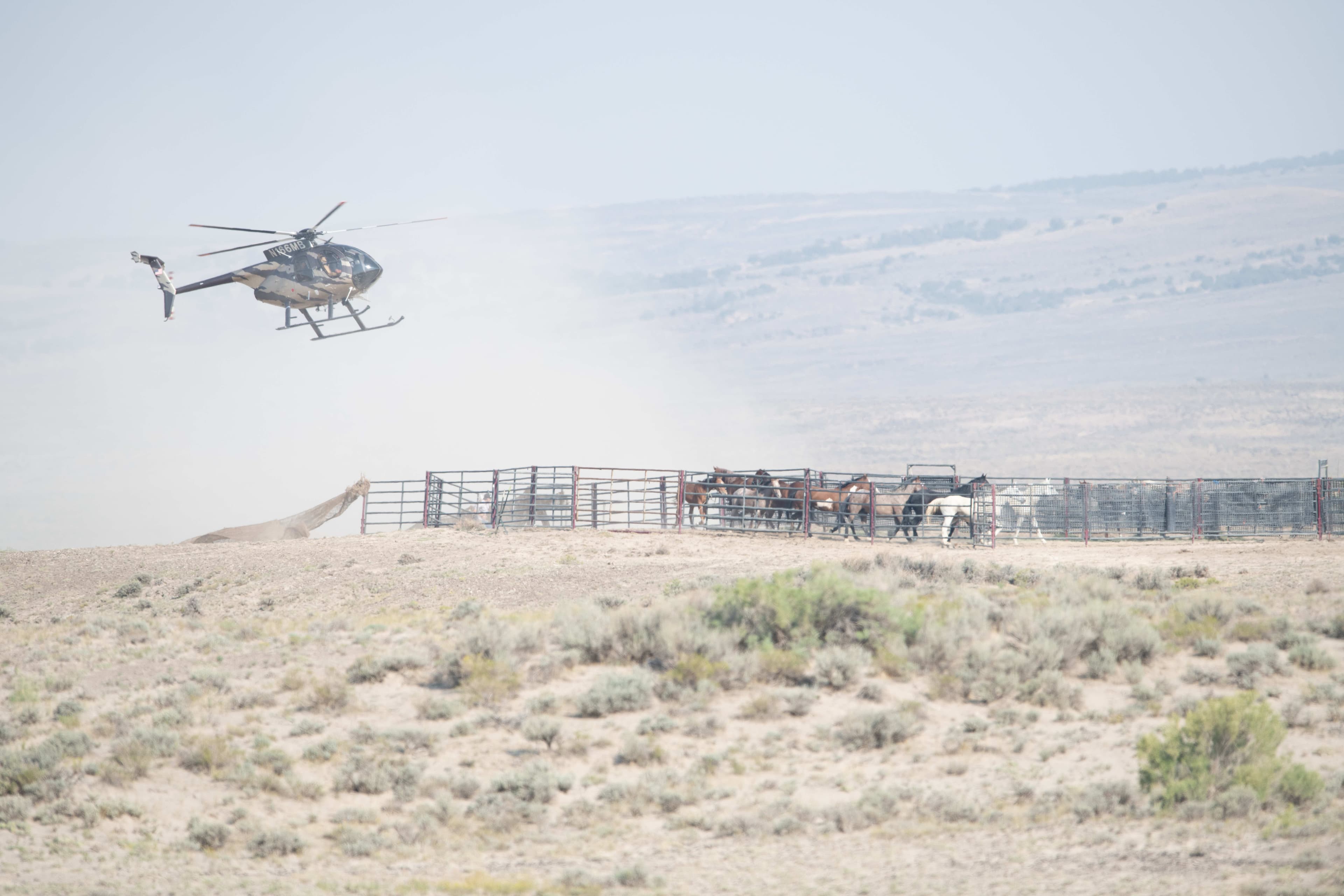 **Interesting note about the contractor, Sun J. The helicopter uses a megaphone to sound off "cop car" sounds and sirens throughout the operation. The pilot would sound the sirens intermittently. According to theBLMstaff, the sirens allowed him to stay back farther from the horses. To our observer, the sirens on the helicopter were simply symbolic of the attitudeBLMhas towards wild horses generally.BLMconstantly, literally, sounds the alarm by blaming the wild horses unfairly for range degradation across the West.