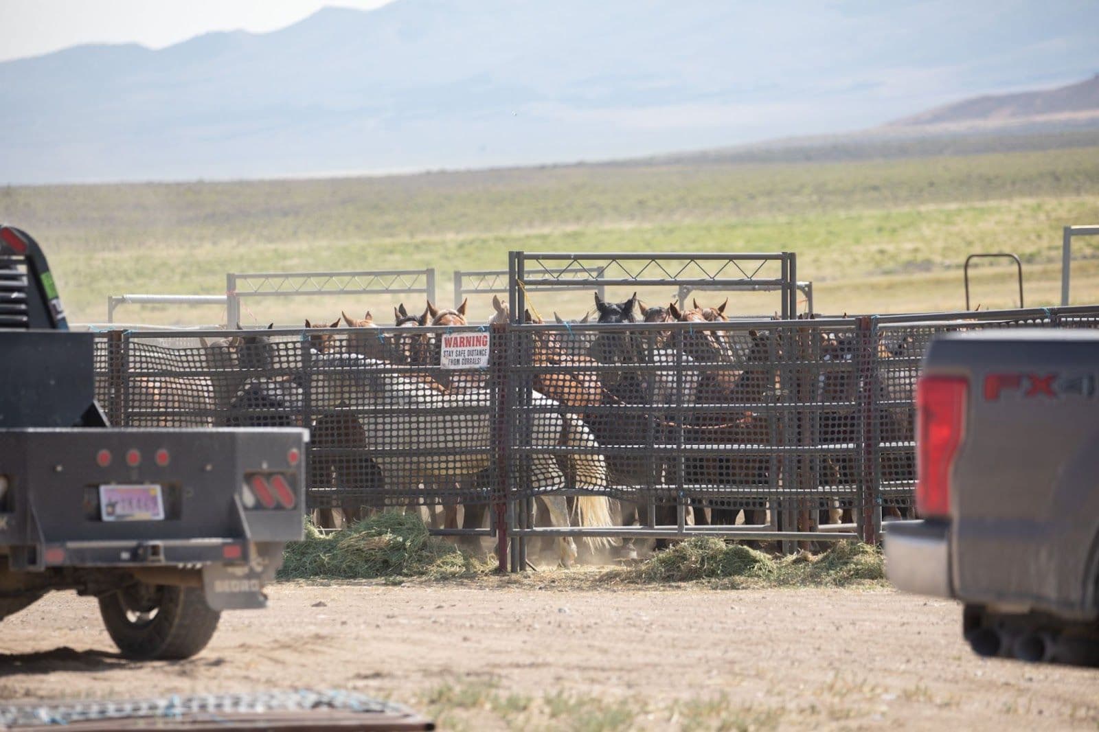 We met at theBLMoffice in Ely, NV at 8:00 am. We followed out to where the temporary holding was approximately 30 miles NW of Ely off Hwy 50. We were instructed to park across the Hwy. As we pulled in, onelivestocktruck was leaving, going in the direction that would take you to the Indian Lakes facility in Fallon, NV.