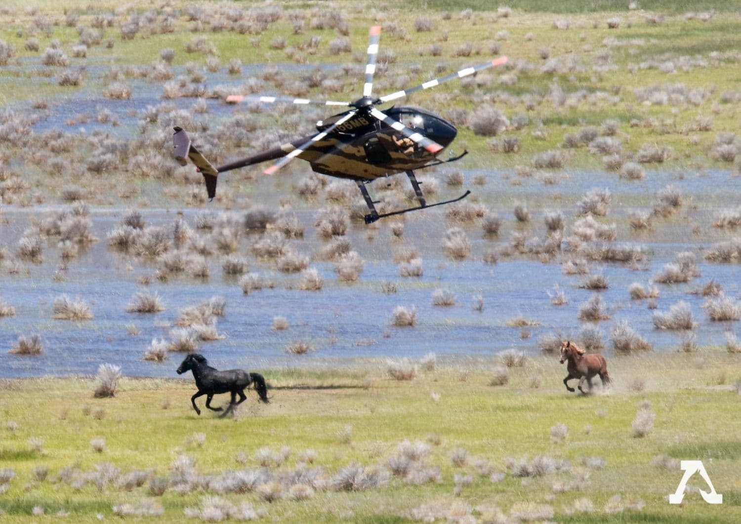 The stallion, however, tried to get his family to safety, and I noticed him charging at the helicopter multiple times. At 2:04, 4 more horses came in, and the day ended after this run.