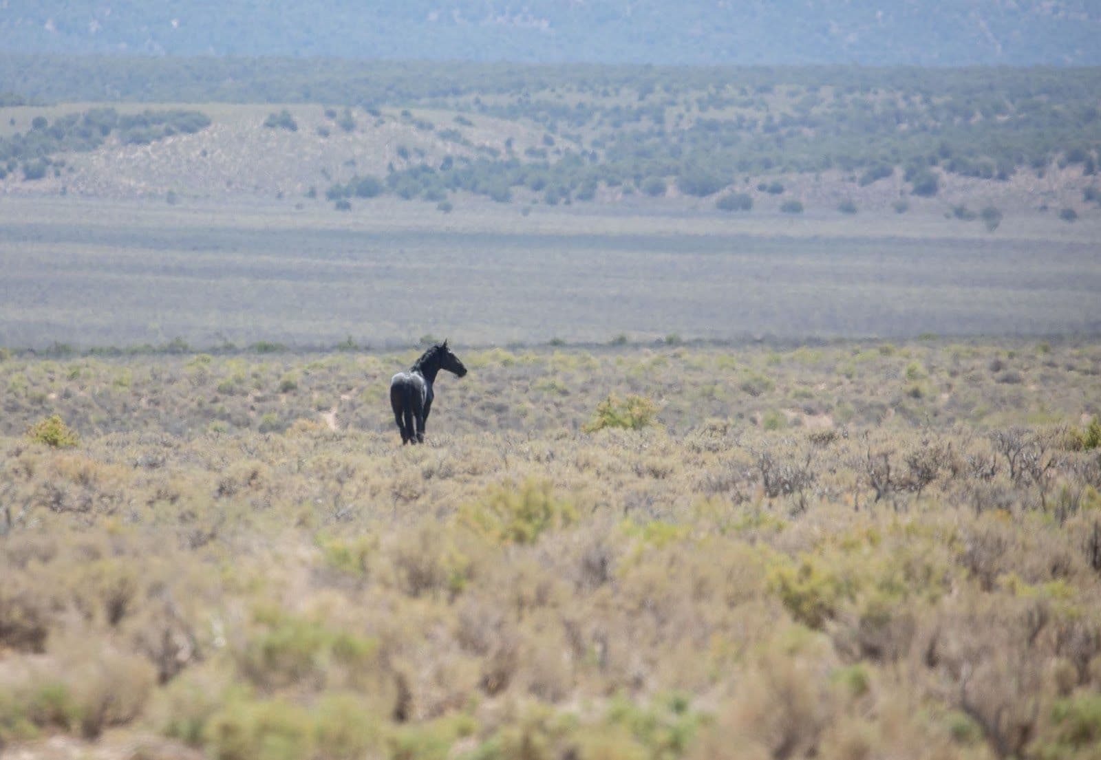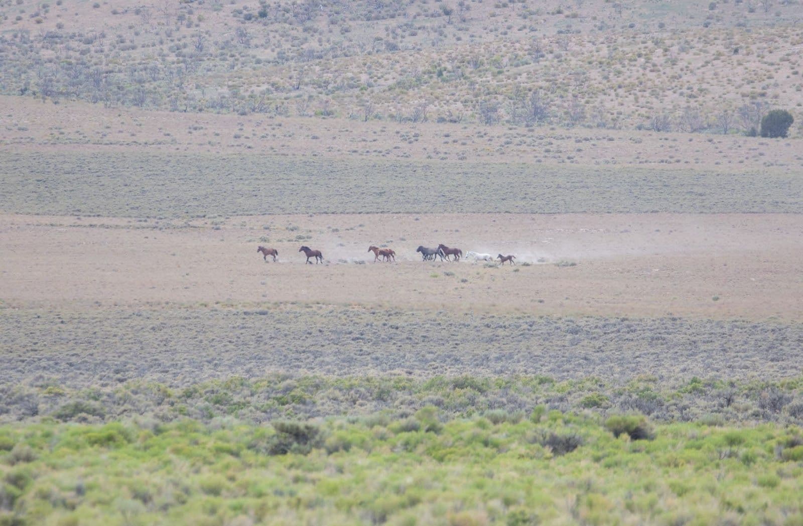 Our meeting point was theBLMoffice in Ely, which we left at 6 am in the morning. We had about an hour's drive to the new trap site. Nearing the new trap site, we saw several groups of horses running out on the open range. We were able to pull over and get a few shots as they ran across the road.