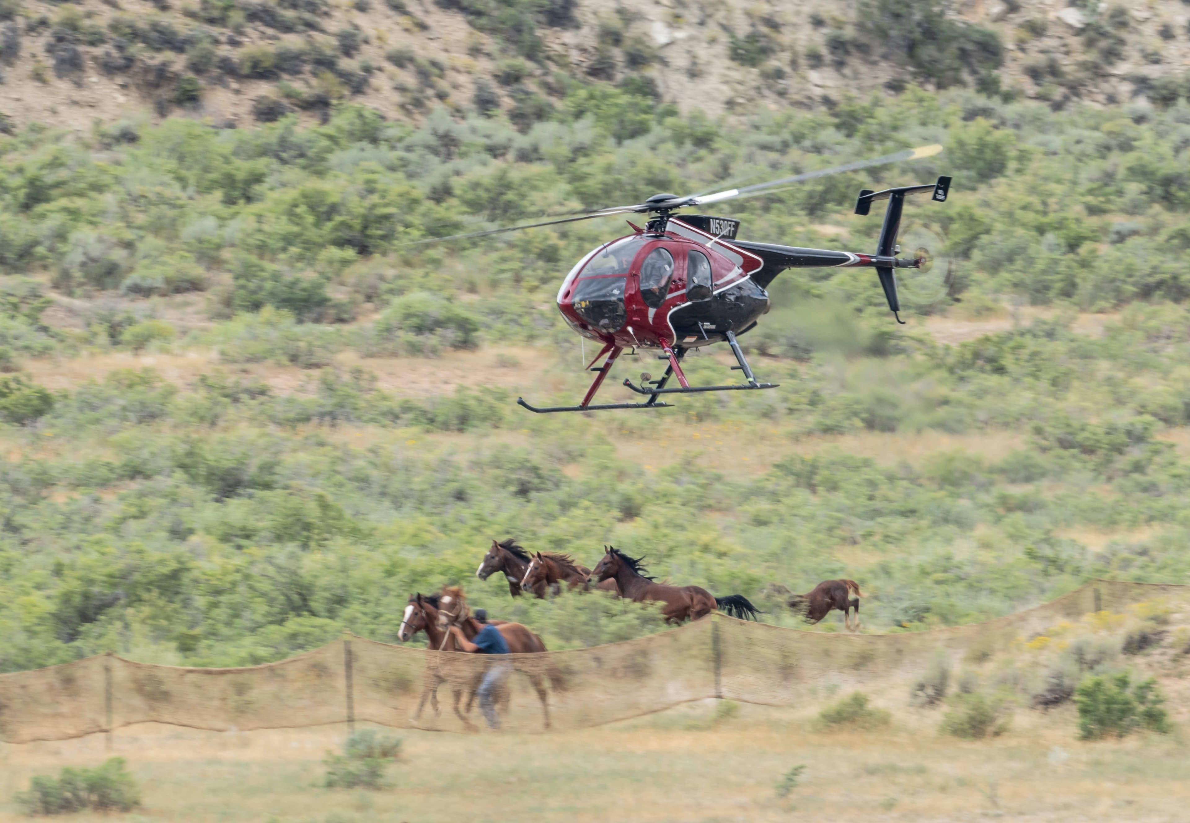 The operation began at 7:50 am and ended at 4:50 pm. According to AWHC’s observer, the same methods as the previous day were used, where four cowboys rounded up a foal by rope and then attempted to bring in the rest of the family by helicopter. Contractors appear to be consciously separating mares and foals to carry out this procedure.