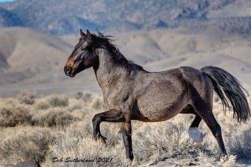Shaggy was born in a canyon in the Virginia Range in 2012 and has always had a beautiful copper shimmer to his coat that could be seen from far away.That’s how I could always tell him apart from the other buckskins in the valley. His sire was the black and white Canyon Phantom who roamed the range for over 21 years and had many mares and offspring. To tell the history of one horse always involves sharing about the lives of other horses on the range, as they are all intertwined in some way and Shaggy is connected to so many wild ones here in Stagecoach Valley.