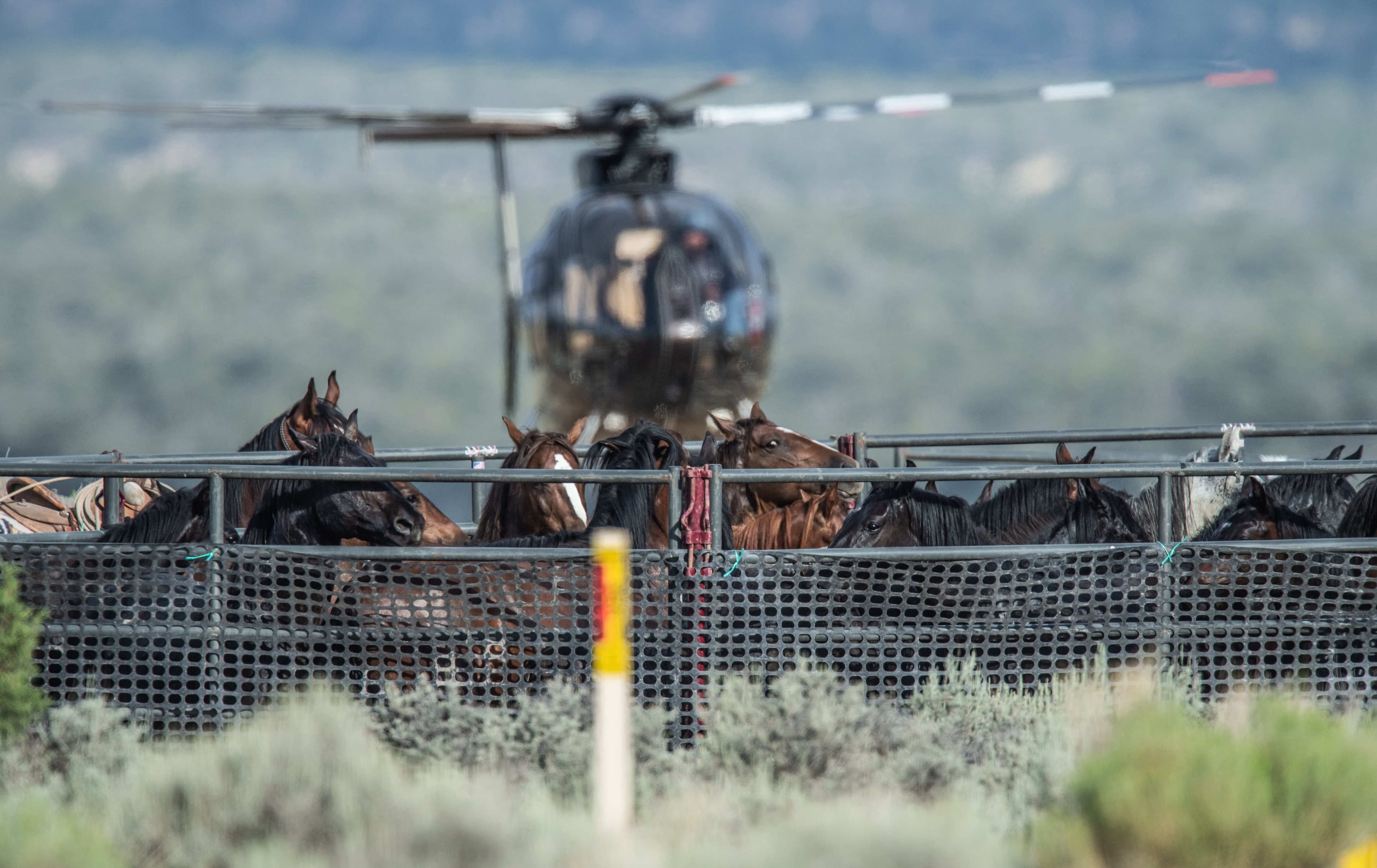 Every year, the Bureau of Land Management (BLM) and U.S. Forest Service round up thousands of wild horses and burros from public lands in remote areas of the West — out of the public's eye. While we send observers to each of the helicopter operations that occur, the federal government and its contractors have placed a number of restrictions on public observation, making it nearly impossible to see the helicopters bringing horses or burros into the trap site or the wranglers roping the animals who evade capture. This creates a significant lack of public oversight and government transparency at the site of these traumatic roundups.